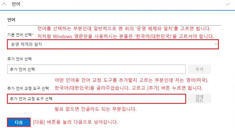 이 부분에서도 특별하게 선택할 것이 없으니 다음으로 눌러주시면 되요.